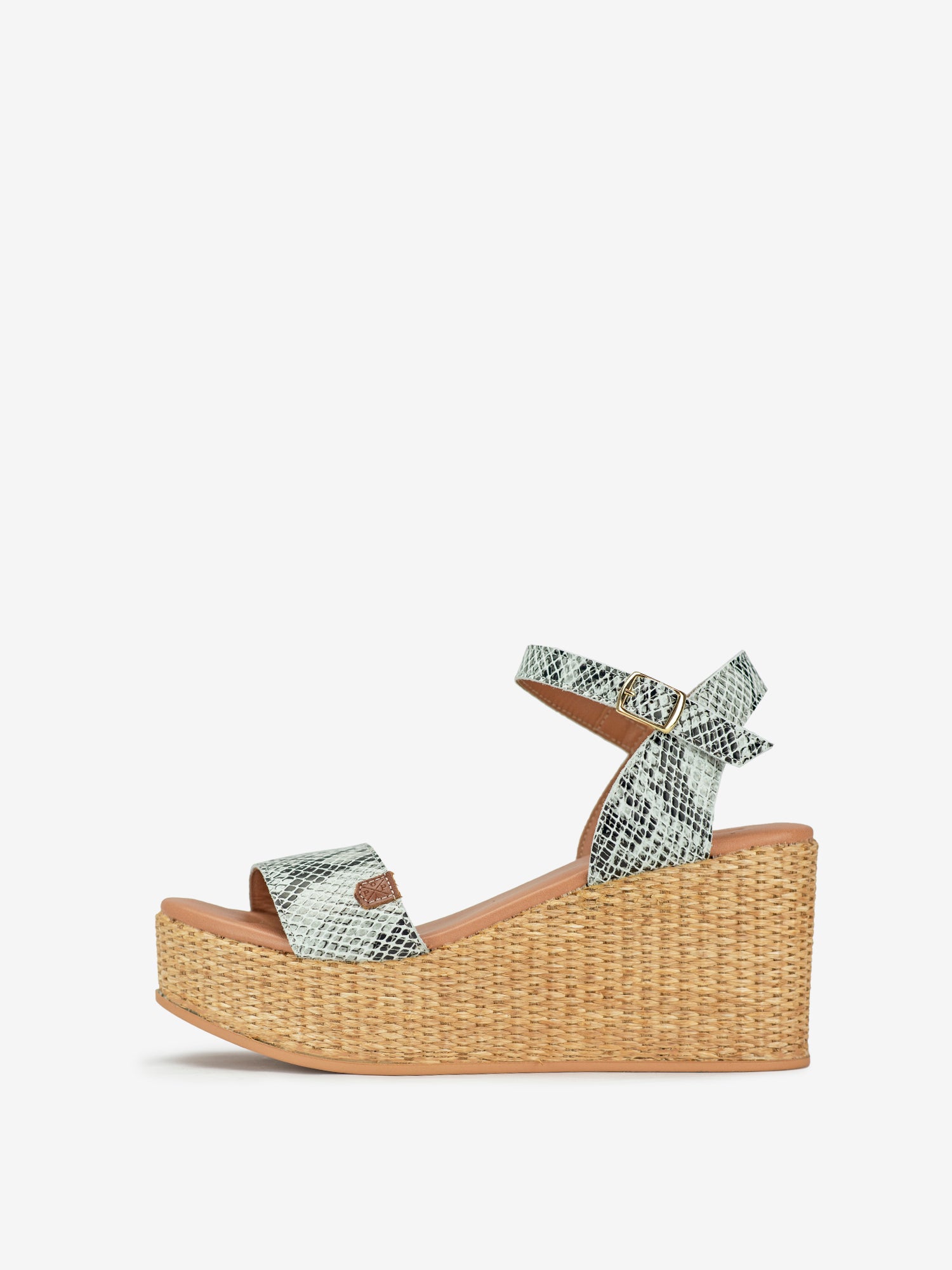 - Plataforma con pala, tira trasera y suela en yute trenzado.