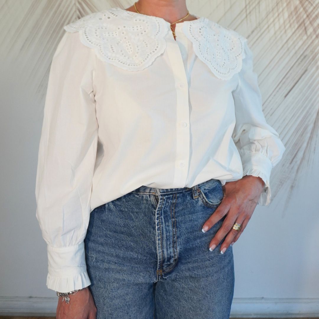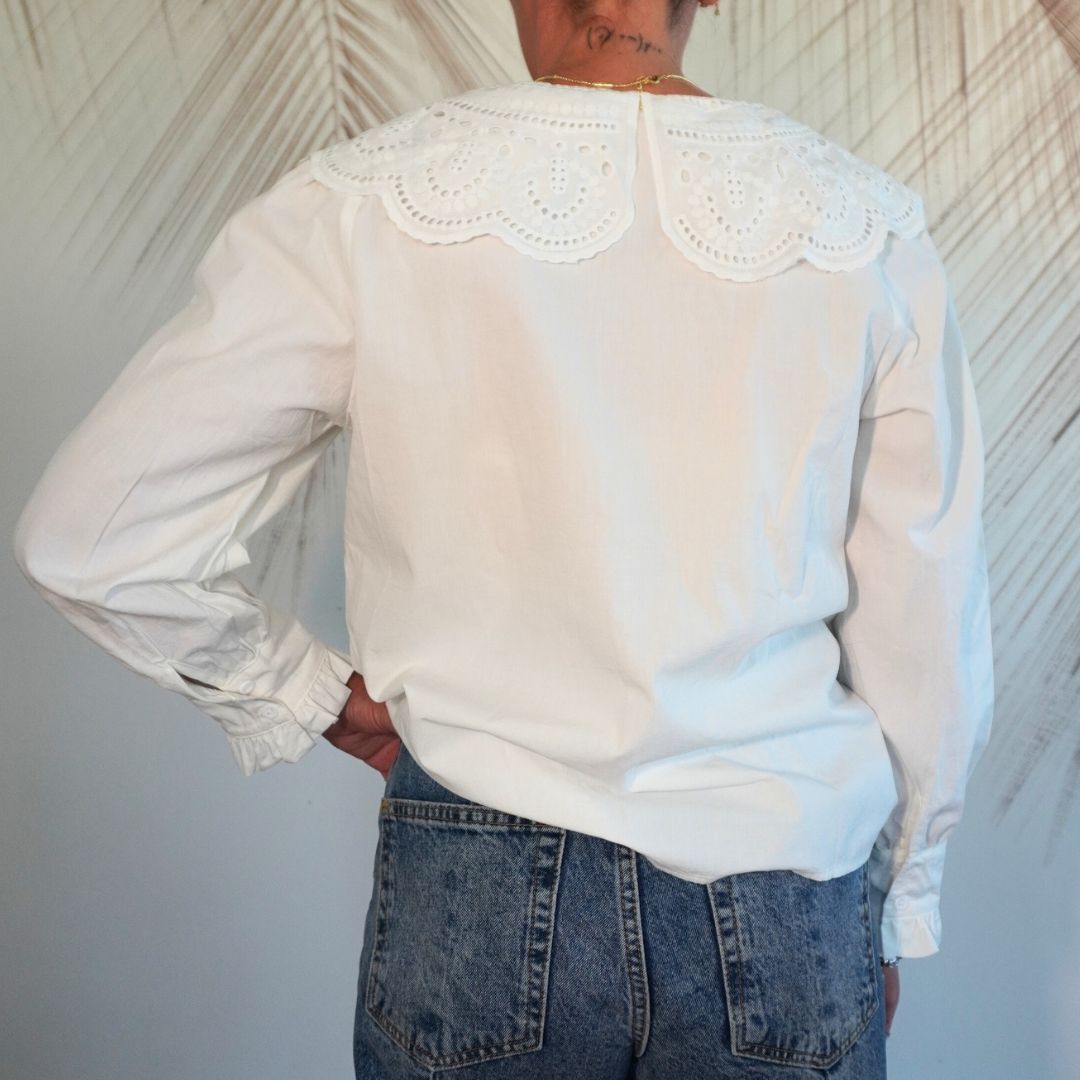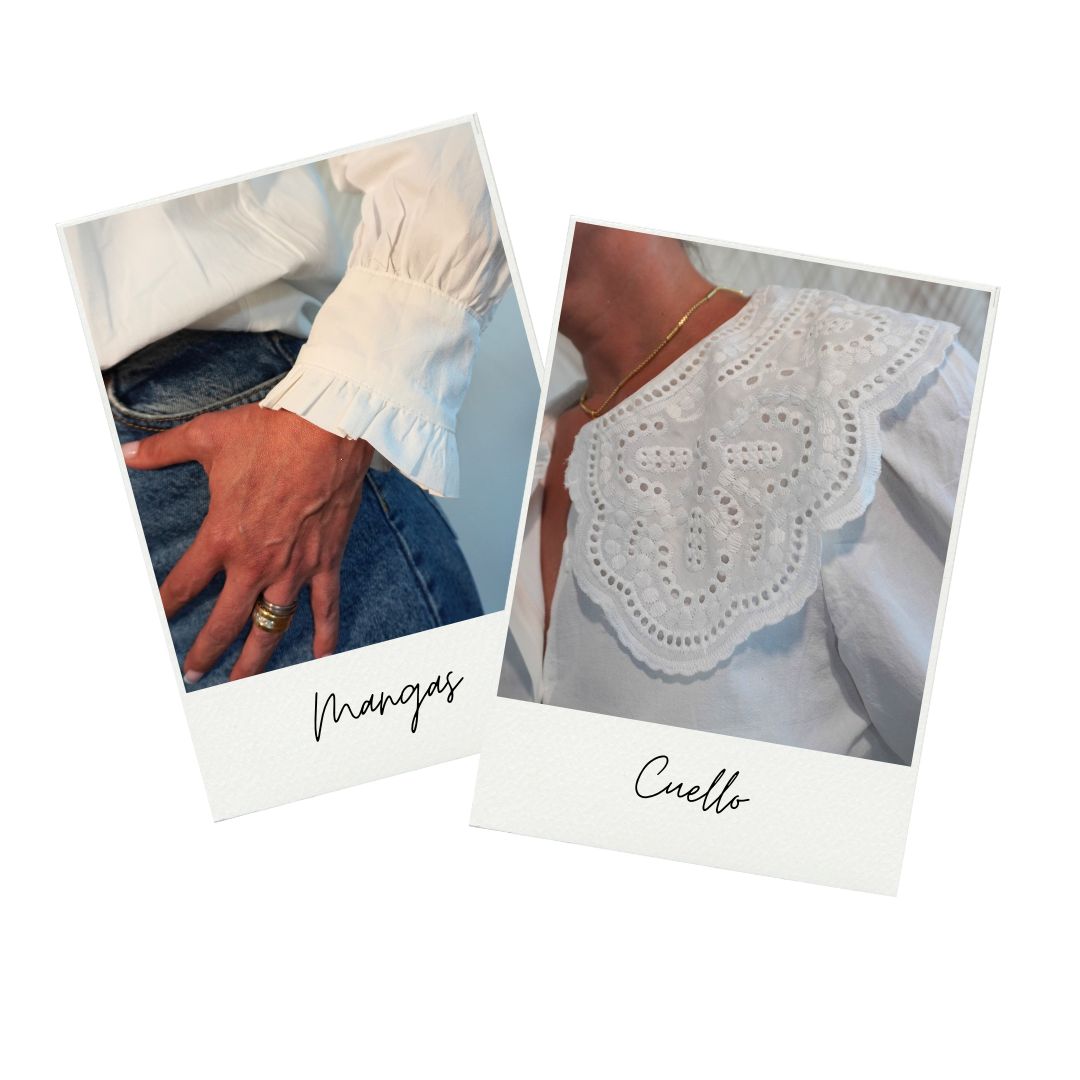 Blusa manga larga blanca, 100% algodón. Con detalle en puños.